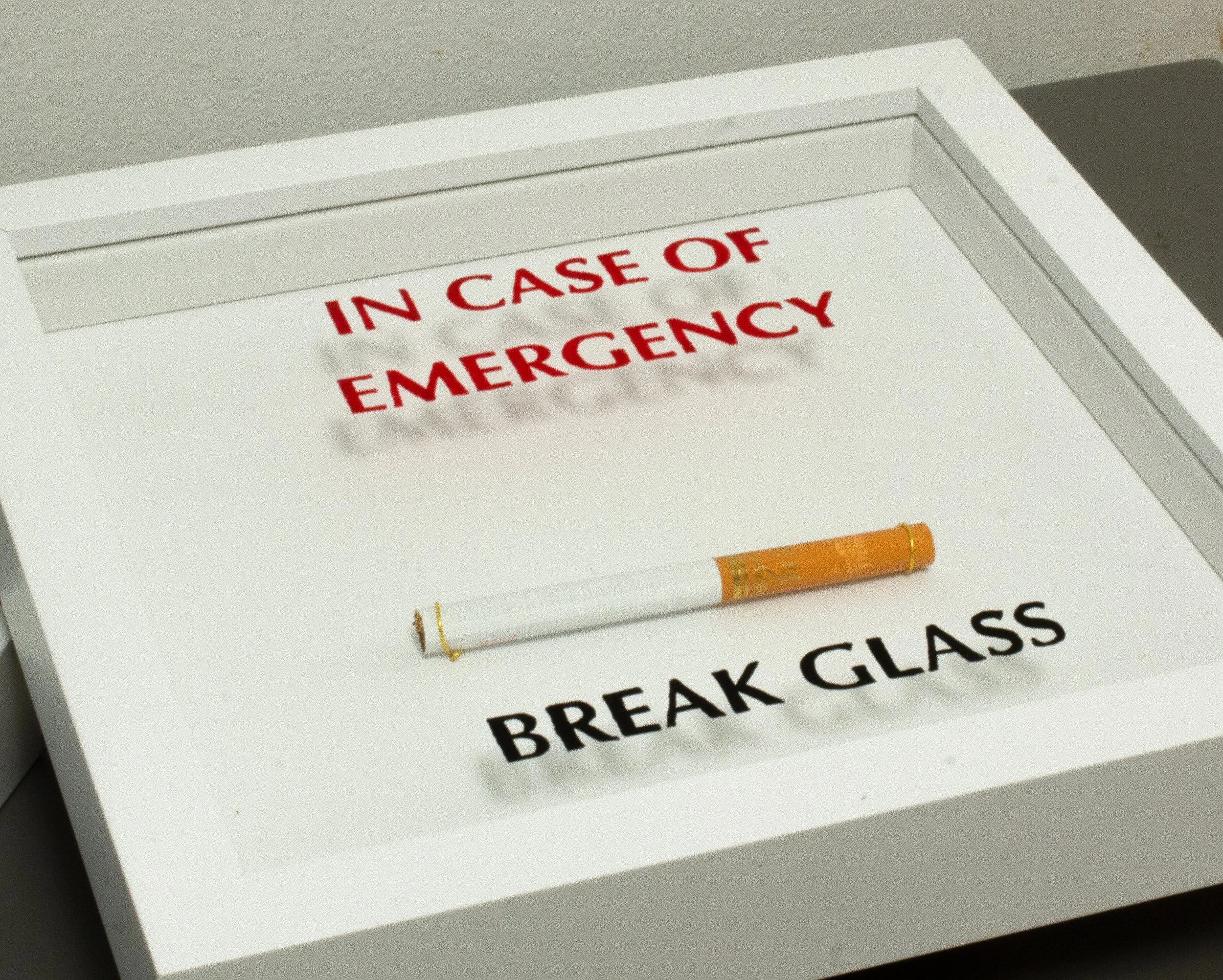 Assemblage: cigarette, glass paint, deep frame, 7 × 7 in